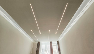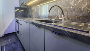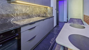 A modern, letisztult színvilág és minőségi anyaghasználat azonnal otthonossá teszi a teret.